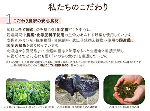 - 農薬・化学肥料不使用の有機栽培の食材/遺伝子組換え・品種改良されていない種(固定種)中心/ 放射線量測定済
