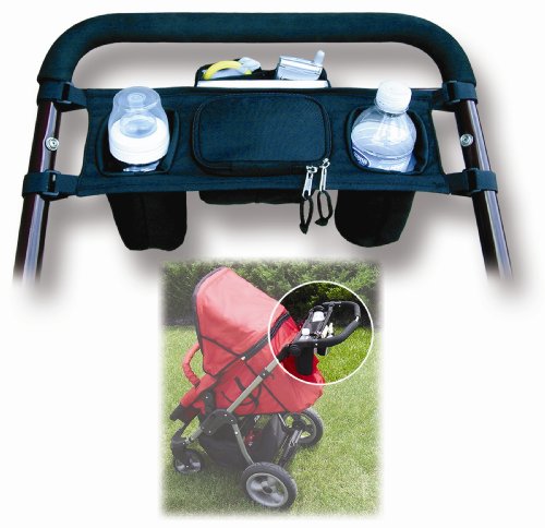 ペットボトル・哺乳びん・ジュースなどがこぼれないカップホルダーの他、ファスナー付のポケット・サイドポケット付で、携帯や小物入れに最適。マジックテープでの取り付けのため、ほとんどのベビーカーにハンドル部が湾曲でも使用できます。