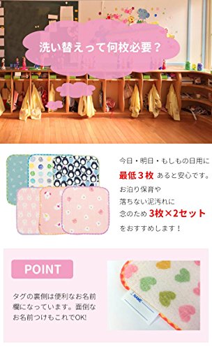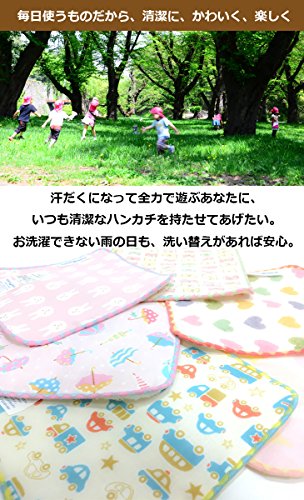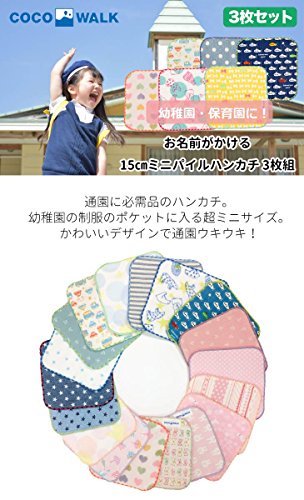 男の子用・女の子用3種類ずつ、可愛い柄のミニハンカチ3枚セット。スモックに入るサイズで年少さんのお手てにぴったり。薄手のパイルでやさしくしっかり吸水します。洗い替えも考え3枚×2セットがおすすめです。