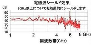 - 高周波電磁波遮蔽率:90%以上@800MHz~8GHz、携帯電話使用周波数帯(800-2100MHz帯)電磁波は99%カット率