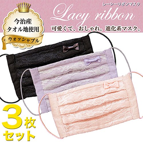 • レースとリボンでオシャレなマスク♪裏地には今治産タオルを使用! !