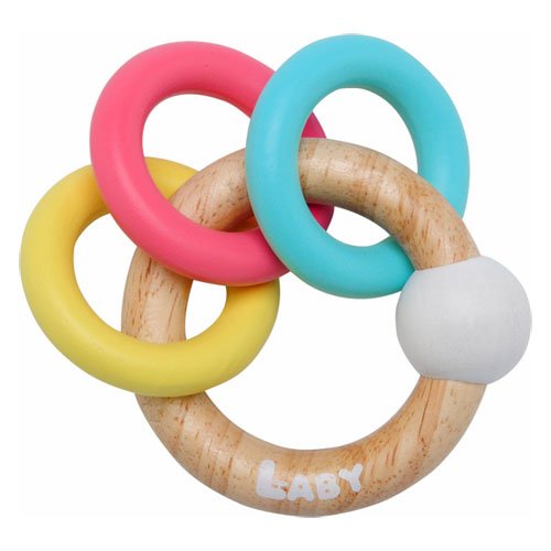 エデュテ社 LABY ベビーサイズのリングラトルです。 パステルカラーがかわいい赤ちゃんのお手手にぴったりサイズの木製ラトルです。 3色のリングがぶつかり合って、ラトルを振るとやわらかな音を奏でます。 やさしい木のぬくもりに触れながら遊ぶことができます。 シンプルでソフトなカラーリングは出産祝いなどの贈り物にもぴったりです。