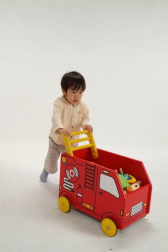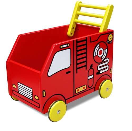 - 可愛い消防車デザインの木製の手押し車のおもちゃ箱。ベビーウォーカーとしても使用できます。
