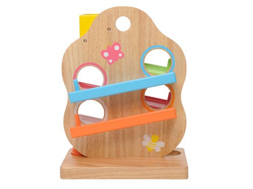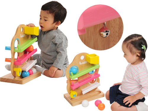 ラビーの木がモチーフの可愛い木製スロープトイです。 黄色いトンネルにボールを入れると、カラフルなスロープをコロコロ転がります。 スロープの最後には、チリンと鳴る鈴の仕掛けが。。。 TREEスロープの本体には、チョウチョやてんとう虫、ハチのイラストが付いています。 ポップなカラーリングで出産祝いにも可愛らしいですね。 塗料は、日本玩具協会の安全基準もクリアしたお子様が舐めても安全なものを使用しています。