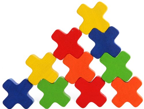 カラフルな十字のパーツを本体の溝に積み上げていく知育おもちゃ。