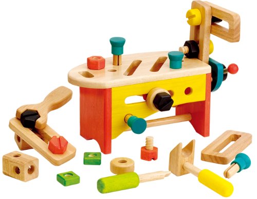 ドライバーやレンチ、ハンマーを使って木製パーツを組み合わせたり大工遊びを楽しめます。