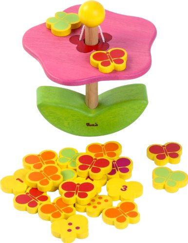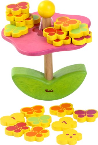 ピンクの花びらの上に、お花が倒れないようにバランスよく、バタフライパーツを乗せていくバランスゲーム。