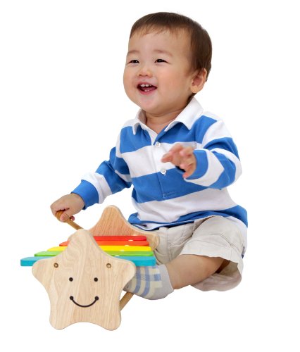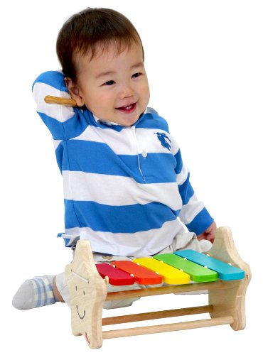 虹色の鍵盤が赤ちゃんの目を引く木琴です。