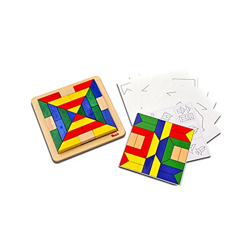 パーツを使って自由に様々なパターンや形を作ったり、付属のカードボードを使って難易度の違った形合わせやパターンづくりにチャレンジできます。
