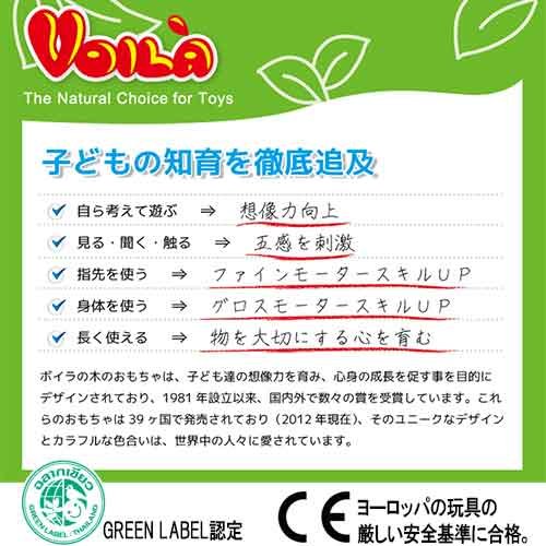 全てのボイラの木のおもちゃはヨーロッパの玩具の厳しい安全基準に合格した商品ですので、おもちゃの安全はもちろん、万が一お子様が舐めてしまっても安全な塗料を使用しています。