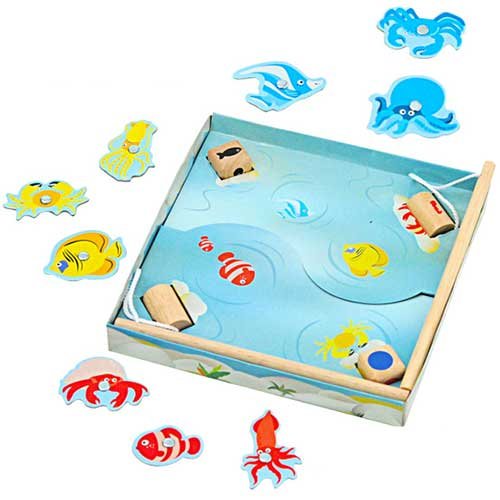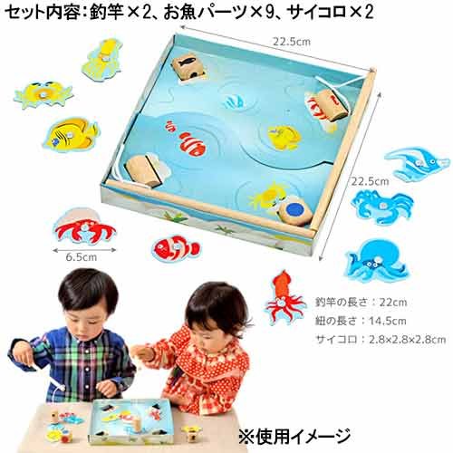 釣竿の先と、お魚さんは磁石が付いており、誰でも簡単に魚釣りゲームを楽しむことができます。