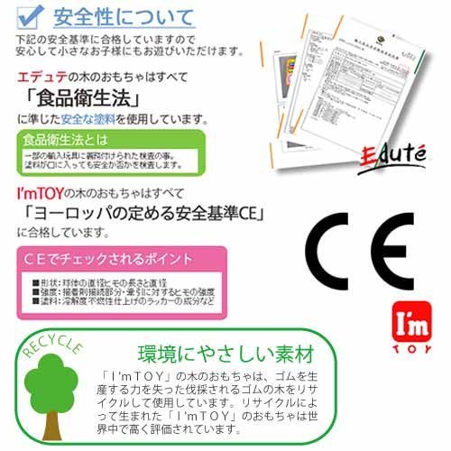 アイムトイシリーズは、にぎる・つなげる・通す・むすぶといった指先の動きを追求して作られた木のおもちゃです。