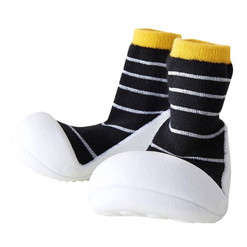 生体力学に基づき、赤ちゃんの足の形や動きを研究して作られた安心設計。靴下より保護力があって滑らず安全、しかも軽くて歩きやすいトレーニングシューズです。汚れたらお洗濯もできて衛生的。主な用途はルームシューズですが底がラバーなので簡易の外履きとしてもご使用頂けます。女の子におすすめのかわいいイエローボーダーのデザイン♪よちよち歩きの赤ちゃんをサポート!ファーストシューズにおすすめです※底に通気のための穴が空いていますので水気のある場所でのご使用はお控え下さい