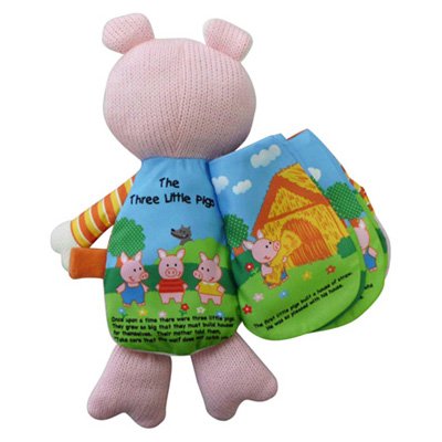 Ed.inter(エドインター)のぬいぐるみとして持ち歩いて遊べる、かぎ針編みぬいぐるみの布絵本です。 可愛らしいぬいぐるみの後ろ側が絵本になっています。 誰もが知っている物語『3びきの子ぶた』が英語で書かれています。 日本語訳シートも付いています。 ストーリーに合わせてぬいぐるみを動かすとより想像が広がります。 ぬいぐるみは、かぎ針編みで肌触りがよく、小さい赤ちゃんでも安心して遊べます。