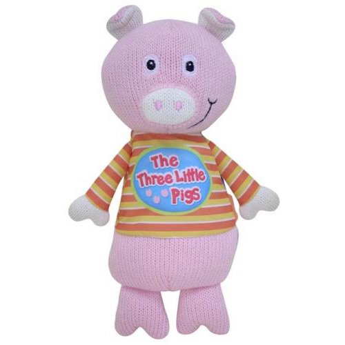 - かぎ針編みぬいぐるみの布絵本です。『3びきの子ぶた』が英語で書かれています