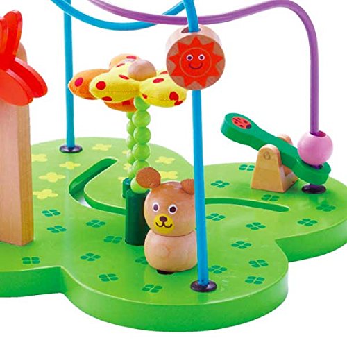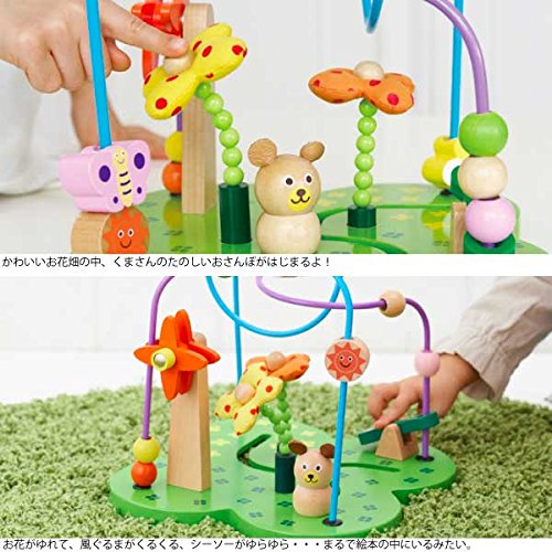くまさんのお花畑のお散歩をモチーフにしたエドインターのルーピングです。 ちょうちょやハチが飛ぶお花畑をくまさんと一緒にお散歩しましょうね。。。 ビーズが風車の脇を落下すると、風車がクルクルとまわります。お花の茎にはゴムが入っているので、指でクネクネ動かして遊ぶ事もできます。てんとう虫のシーソーでは、ピョーン♪とビーズ飛ばしを楽しむ事ができます。指先を使う遊びがたくさん詰まったルーピングです。 指先の器用性だけでなく、物語を作り上げる創造力も豊かに育みます。