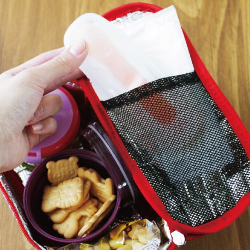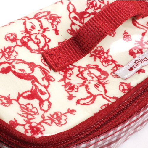 ninita(ニニータ) 離乳食ケースは、さまざまな離乳食カップを収納することができます。(サイズ:6×21×10cm)表地はラミネート加工済みなので汚れにくく、おでかけ先で地面に置いたりしても汚れがつきにくそうです。内側には保温・保冷機能のある素材を使用しているので夏場や冬場でも安心して離乳食を持ち運ぶことができます。ネットポケット付きで、スプーンセットやヌードルカッター、お手拭きなども収納が可能です。