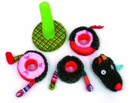 ただつみあげるだけではなく、組み立てていくとひとつの形が完成する新しいタイプのリングトーイ。