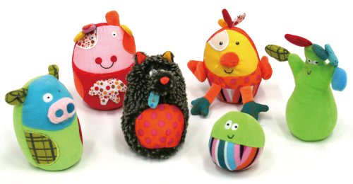 ルールー:W8×D8×H13cm、豚:W8×D9×H12cm、ボール:W6×D6×H7cm、牛:W9×D8×H12cm、ニワトリ:W11×D11×H13cm、木:W13×D7×H15cm