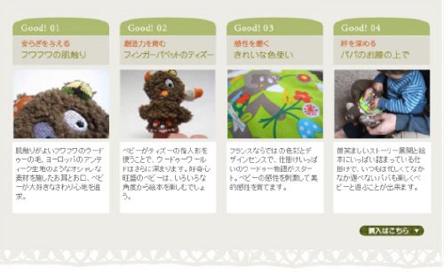 ◆触って、感じて、学べる布絵本◆フランス発・オシャレな知育玩具で人気の「くまのウードゥー」。なかよし親子、パパくまのウードゥーと子ぐまのティズーの物語が、仕掛けのついた楽しい布絵本になりました。 触って、感じて、学ぶことのできる布絵本は、めくるとたくさんの発見があり、お出かけのときのベビーのお気に入りになりそう。かわいいティズーの指人形付きなので、お子様と一緒に、親子で楽しむことができます。 ギフトボックス入りなので、お子様へのギフトにぴったりのアイテムです。