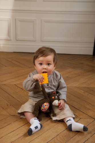 歯がはえはじめたベビーは愛らしいティズーのぬいぐるみが大好き! 手放しません。