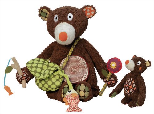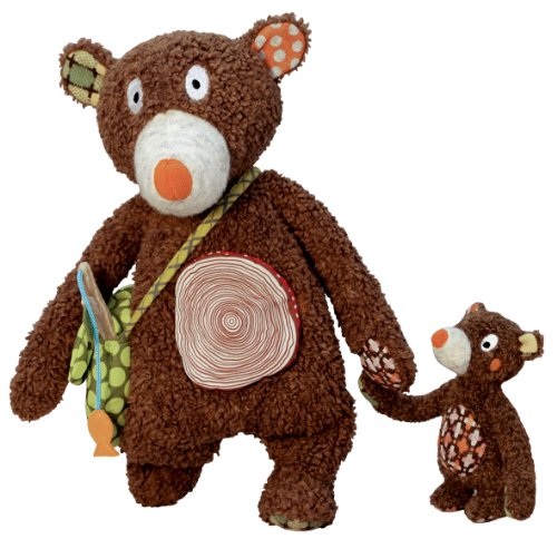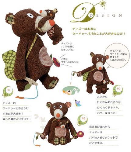 ウードゥーは森が大好きで魚釣りが得意なお父さん。ティズーは、甘えん坊なくまの赤ちゃん。