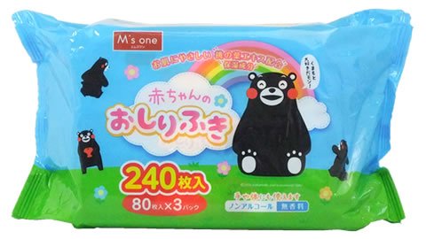 エムズワン 赤ちゃんのおしりふき くまモン (80枚×3個パック)