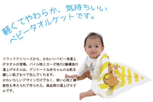 - リラックマのキャラクターがかわいく描かれた、心癒されるベビー用湯上げタオル。パイル地とガーゼ地の2層構造の湯上げタオルは、デリケートな赤ちゃんのお肌を優しい肌ざわりで包んでくれます。 裏ガーゼとは、表がパイル地(タオル地)、裏がガーゼ地と、2層構造で織られている素材のこと。綿100%ガーゼの優しいタッチで身体を拭く時に、赤ちゃんの敏感なお肌を傷つける心配がありません。