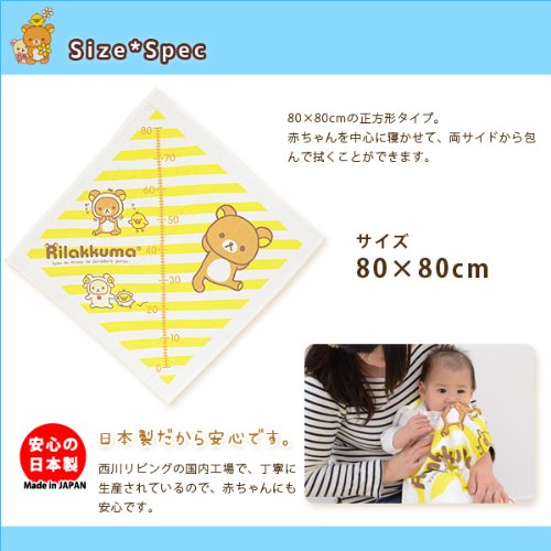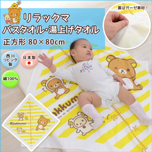日本製 西川リビング リラックマ 綿100% 湯上げタオル 約90×90cm [Baby Product]