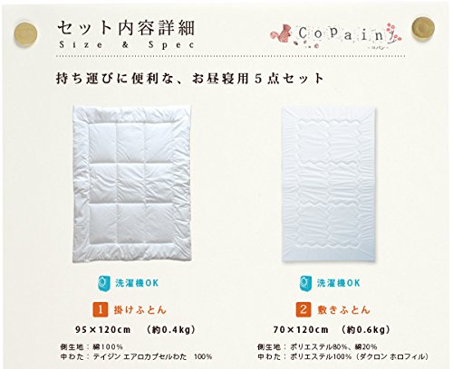 - 【敷きふとん】 1枚 70×120cm(0.6kg) 側生地:ポリエステル80%・綿20%(高密度織)、中わた:ポリエステル100%(テイジン V-LAP使用)