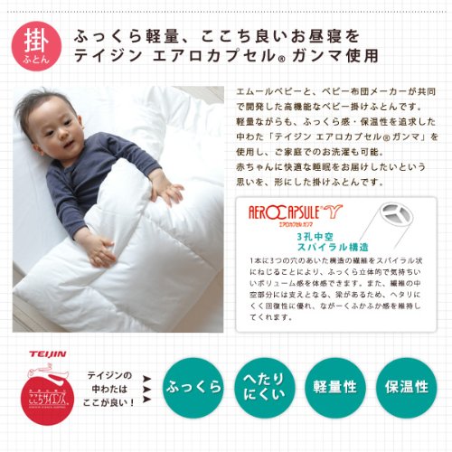 - 【掛けふとん】 1枚 95×120cm(0.4kg) 側生地:綿100%、詰め物:テイジン エアロカプセルガンマ 100%