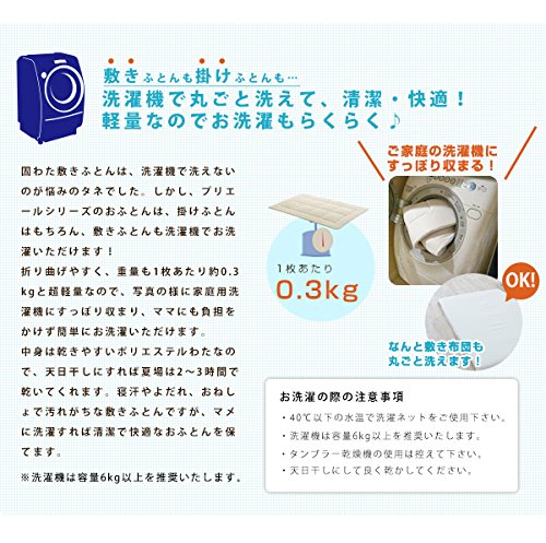 - 【掛けふとん】 1枚 75×95cm、(中わた0.3kg) 側生地:綿100%、詰め物:指定外繊維(テンセル)50% ポリエステル50%