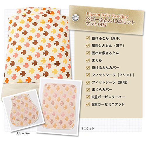 - カバーリングはすべて、赤ちゃんのお肌に優しいダブルガーゼ(2重ガーゼ)。掛けふとんには、天然素材「テンセル」を使用しました。6重織りのガーゼスリーパーやミニケットもセットした、充実の10点セットです。