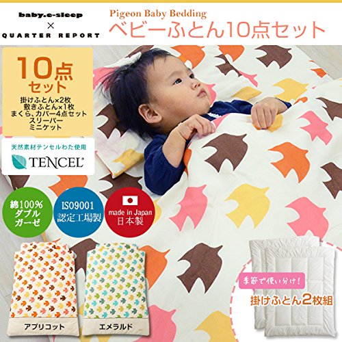 QUARTER REPORT 「ピジョン」 ベビー布団セット 10点セット 日本製 洗える (エメラルド(グリーン系))