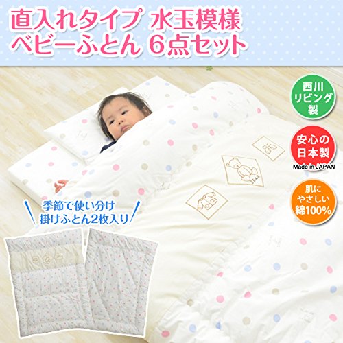 水玉模様 直入れタイプ ベビーふとん 6点セット 日本製