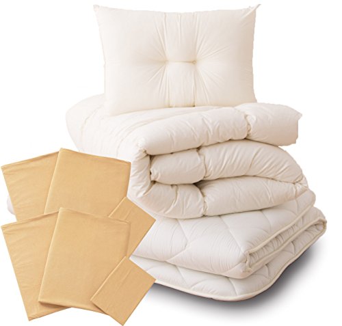 - 【素材】掛け布団 中わた:ポリエステル100%(帝人マイティトップII 50%)、6ヶ所ループ付 / 敷き布団:中わた:ポリエステル100%(帝人マイティトップII 50%)約2.0kg、中芯:ポリエステル固わた100% / 枕 中わた:ポリエステル100%(敷き布団&掛け布団&枕の側地には綿100%200本ブロード使用) 布団カバー:綿100%やわらか天竺ニット