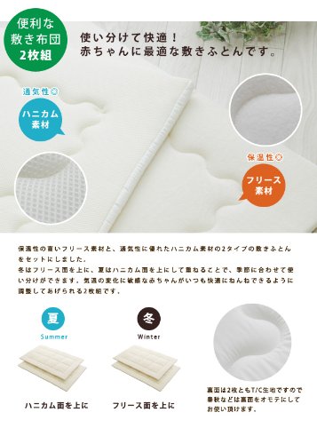 日本製 洗える ベビー 敷き布団 2枚組 (フリース敷き布団 ハニカム敷き布団)
