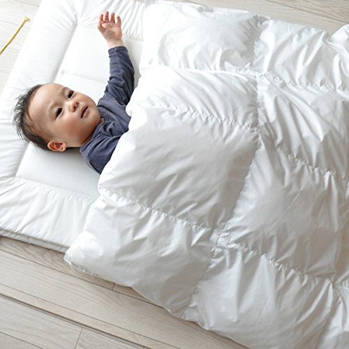 エムールベビーと、ベビー布団メーカーが共同で開発した高機能なベビー布団です。 中綿には、コンフォレルダウンエッセンスという綿を使用。まるで羽毛の様な極細のつぶ綿が、やわらかく赤ちゃんの体を包み込んでくれます。 保温性・保湿性に優れ、洗濯機で洗える。ベビー布団に必要な要素を満たした、自信の1枚です。