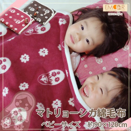 - 日本製マトリョーシカ綿毛布/ベビーサイズ ひざ掛けエムールオリジナルのかわいくて肌さわりの良い毛布です。エムールでしか売っていないレア限定アイテム。