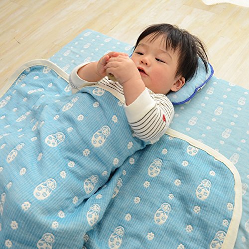 エムール マトリョーシカ柄 ベビー 6重ガーゼケット 90×120cm ターコイズブルー