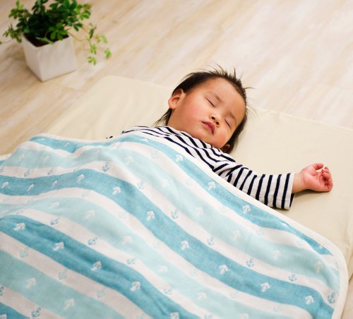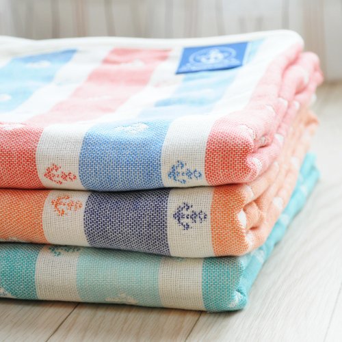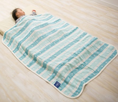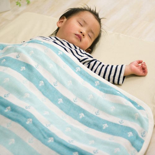 エムール ベビー用 ガーゼケット 90×120cm イカリボーダー 日本製 アクアブルー [Baby Product]