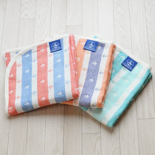 日本発、エムール発。海と地球を愛する貴方のための爽やかふっくら4重ガーゼ。エムールがデザインを起こし、日本で丁寧に仕上げたオリジナルの高級4重織ガーゼアイテム。絶妙な太ボーダーと小さな錨のデザインを、ざっくりとしたガーゼでナチュラルに仕上げました。ベビーと言っても90×120cmで0歳から3・4歳くらいまで寝具としてお使いいただけます。ガーゼは使い込むほどに肌になじむ素材。使ってくるうちに愛着がわいてきます。3・4歳を過ぎておねえさん・おにいさんになってきたら、お昼寝用や膝掛けなどにお使いください。