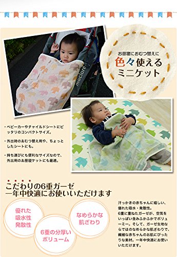 - ベビーカーやチャイルドシートにピッタリのコンパクトサイズ。持ち運びにも便利なサイズなので、外出用のおむつ替えやお昼寝ケットにも最適。汗っかきの赤ちゃんに嬉しい、優れた吸水・発散性。6重に重ねたガーゼが、空気をいっぱい含みふかふかでボリューミー。そして、ガーゼ生地ならではのなめらかな肌ざわりで、一年中快適にお使いいただけます。