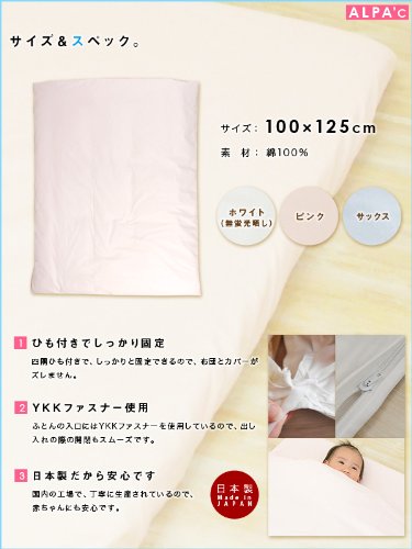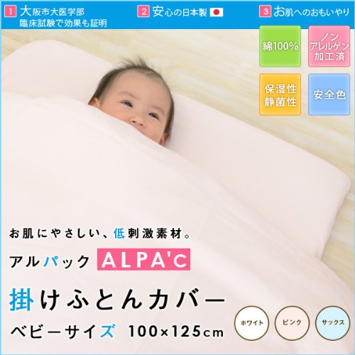 日本製 お肌にやさしい低刺激素材 アルパック ベビー 掛け布団カバー 100×125cm (ホワイト)