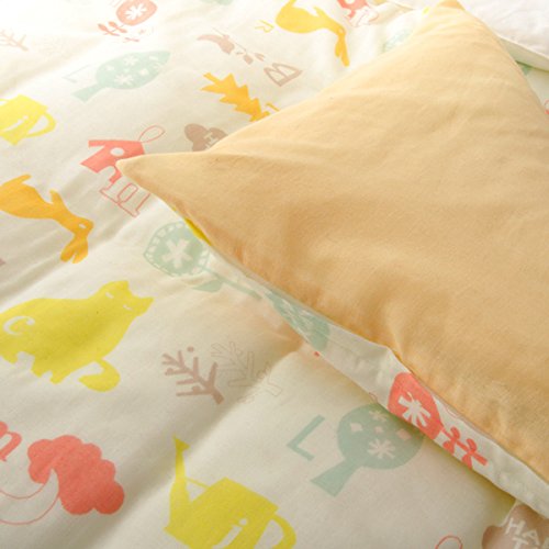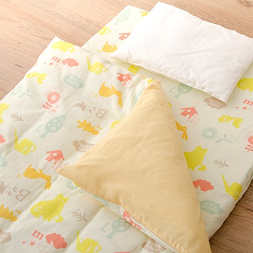 - 通常の掛けふとんより、一回り小さい、ベビーミニサイズの掛けふとん(約80×100cm)専用のカバーです。カラフルな色彩のどうぶつや自然のモチーフが、やさしいタッチで描かれた、綿100%の2重ガーゼ生地を使用しています。お布団カバーは、お子様の敏感な肌に直接触れるもの。綿100%の2重ガーゼ生地は吸湿発散性に優れ、汗をかいてもムレにくく、お子様のお肌にとても馴染みやすい素材なんです。