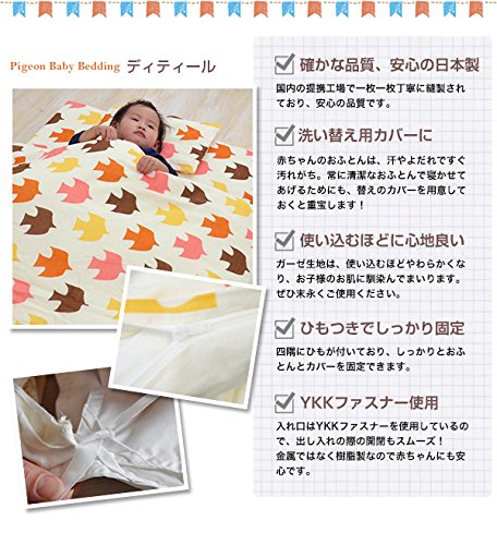 - 優しい色とシンプルなタッチで描かれた小鳥のイラストが印象的な、ピジョンシリーズ。QUARTER REPORTならではのデザイン性と、老舗ベビー布団メーカー「ニシザキ」がコラボレーションし、オシャレで高品質なベビーふとんカバーが誕生しました。