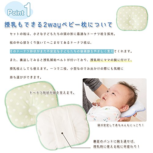 - 【特徴】日本製で、可愛くて、しかも綿100%。男の子にも女の子にも使える色や柄をセットでご用意しました。ドーナツ枕は中心部をくり抜いてへこませてあるので、赤ちゃんの頭の形に最適。裏側には授乳補助ベルトがあるのでママの腕につければ授乳枕としても使える2WAY仕様。小型なので持ち運びができて、お出かけ時にも重宝します。掛けカバーには内側4か所ひも付きで、カバーとお布団をしっかり固定。敷き布団用のカバーには、よれやたるみを防ぎぴったりフィットさせるフィットシーツを採用。カバーが赤ちゃんの口元を覆ってしまう不慮の事故を防ぐためにも、フィットシーツが推奨されています。※カバーのみの販売です。サイズ間違いにご注意ください※