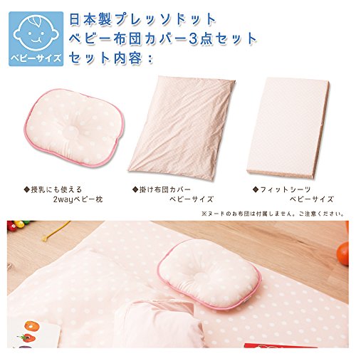 エムール 日本製 ベビー布団カバー3点セット 「プレッソドット」 ベビーサイズ ピンク