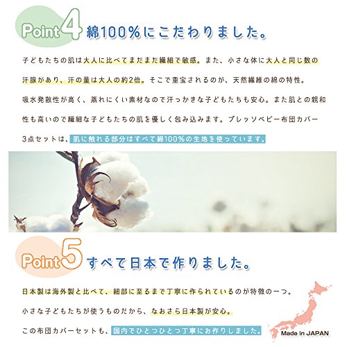 そんなパパママの、子どもたちのことを思った“やさいいわがまま”をクリアすべく、エムールが出した答えが、この日本製プレッソドットベビー布団カバー3点セットです。