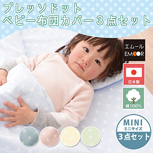 エムール 日本製 ベビー布団カバー3点セット 「プレッソドット」 ミニサイズ グリーン
